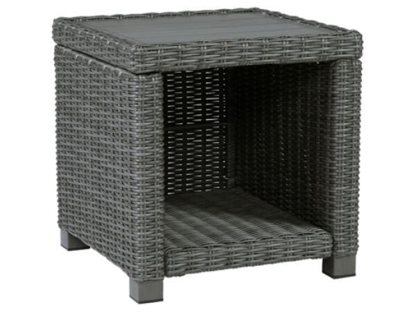Add a distinguished touch of gray to your outdoor living space with this end table. This head-turning table is made with resin wicker over an aluminum frame for a relaxed look that provides seasons of enjoyment. Its aluminum top combines the exceptional durability and weather resistance you need with the "wood look" finish you love.
