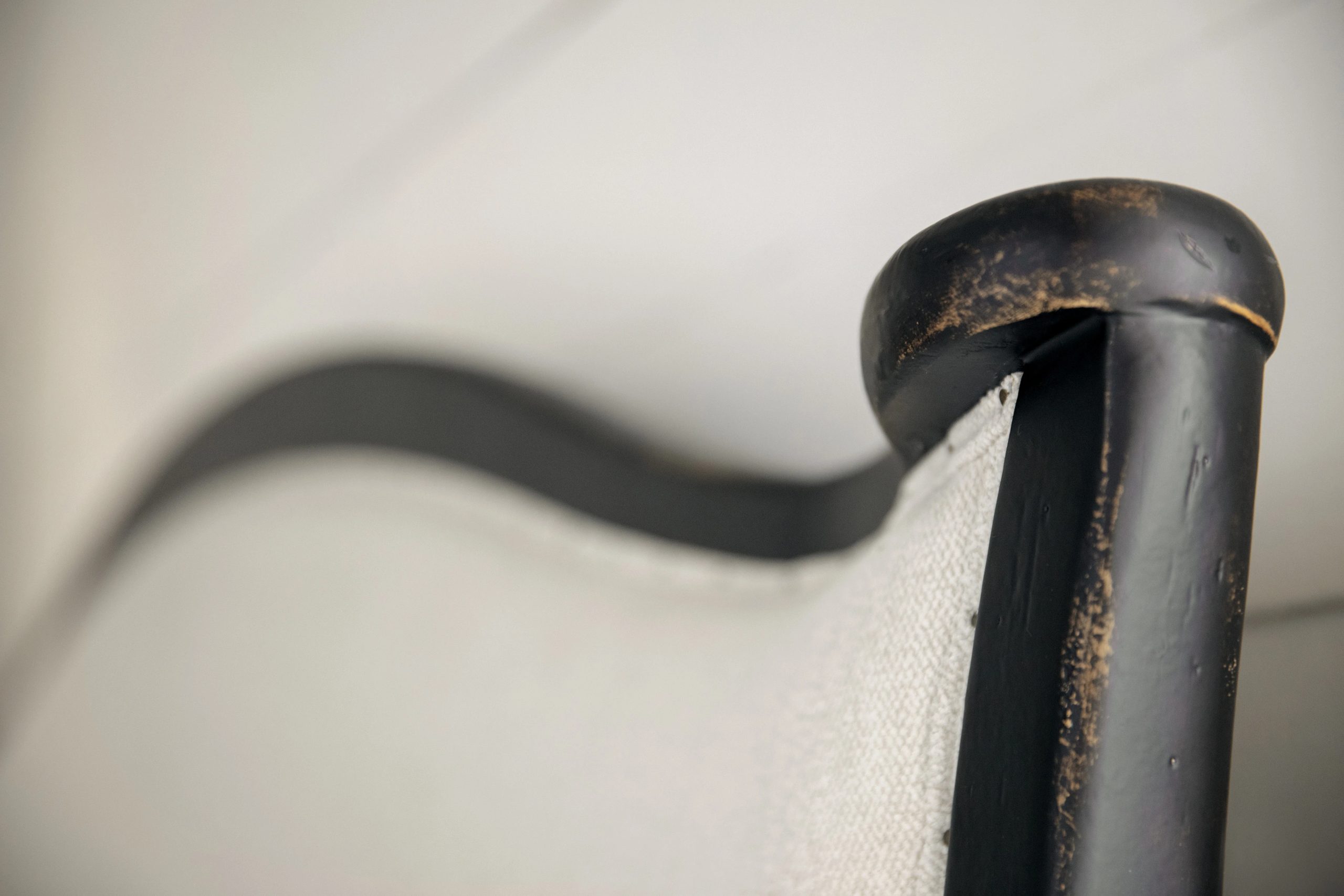 The sweeping, shaped headboard and footboard of the stunning Ciao Bella King Upholstered Bed will present a romantic centerpiece of your master suite or guest bedroom. The creamy Tuscan White upholstered headboard and footboard are framed in Poplar Solids finished in a hand-chiseled exquisite black color and trimmed in intricate tack nailheads. Includes the headboard, footboard and rails.