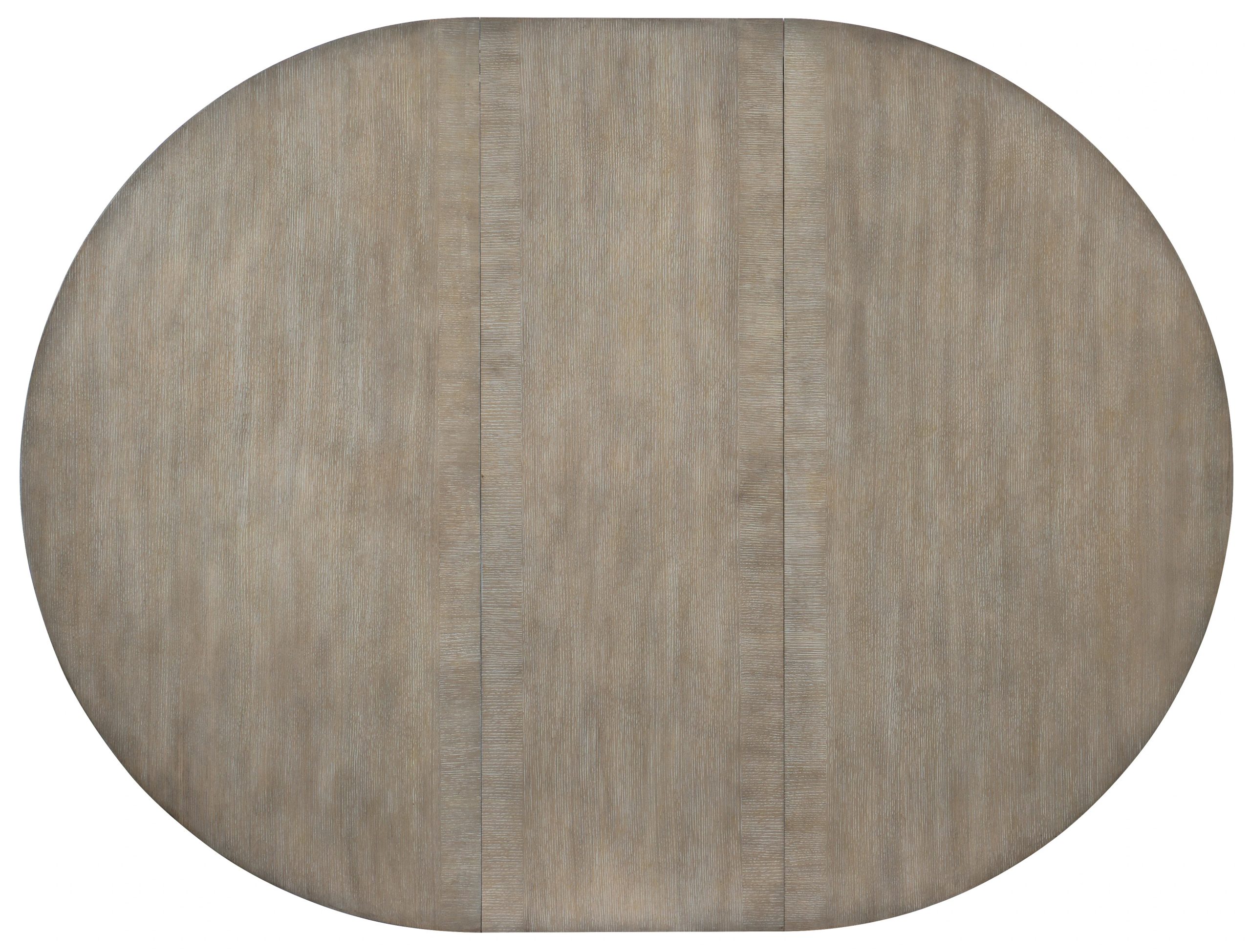 In a soft rounded form with wire-brushed greige and antique white finish on quartered White Oak, the Affinity 48-inch round table extends to 66 inches with the 18-inch leaf in place.