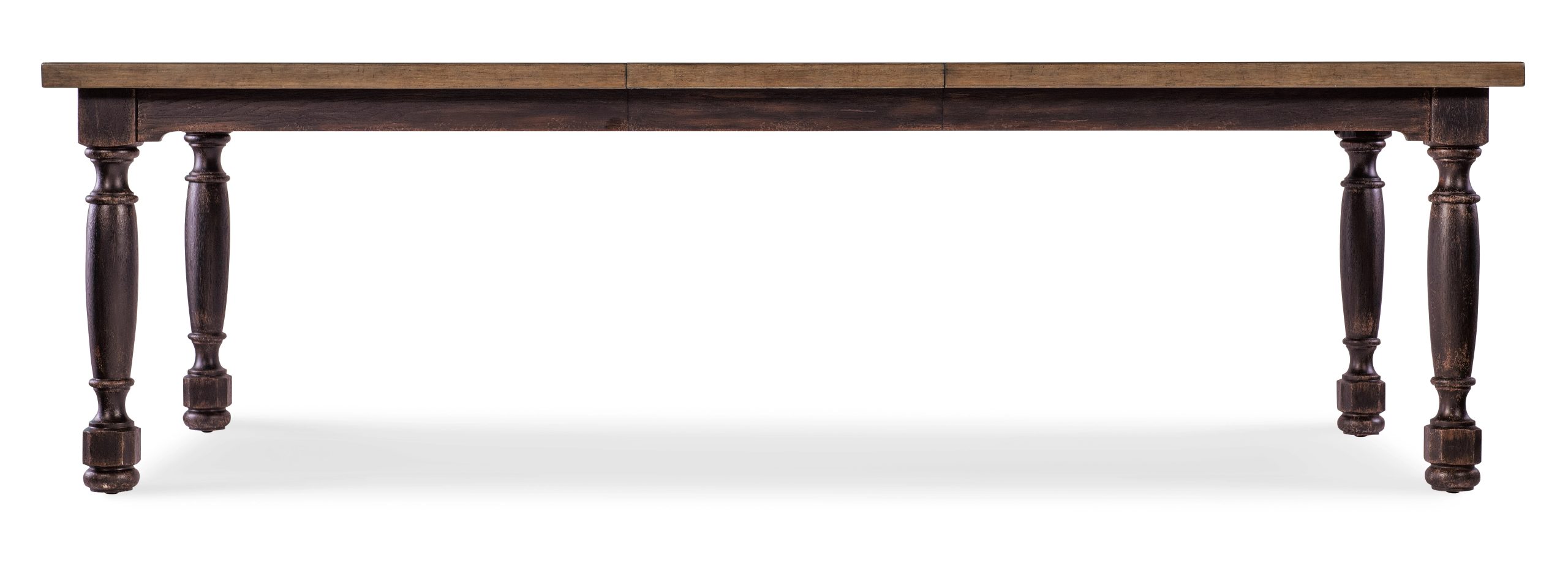 Combining the deep, dark Molasses finish over Cathedral Oak Veneers on the base and the warm Honey finish in a soft brown tone on the top, the Americana Dining Table harkens back to a simpler, more genteel time. Featuring a Solid-Wood Edge top, it has chunky turned legs. What’s more, this table can be a real crowd-pleaser. With the 22-inch leaf in place, it extends to 102 inches long, accommodating up to 4 coordinating benches and two armchairs or up to 8 coordinating arm or side chairs. Without the leaf, it accommodates up to 6 coordinating arm or side chairs and up to two coordinating benches and two armchairs.