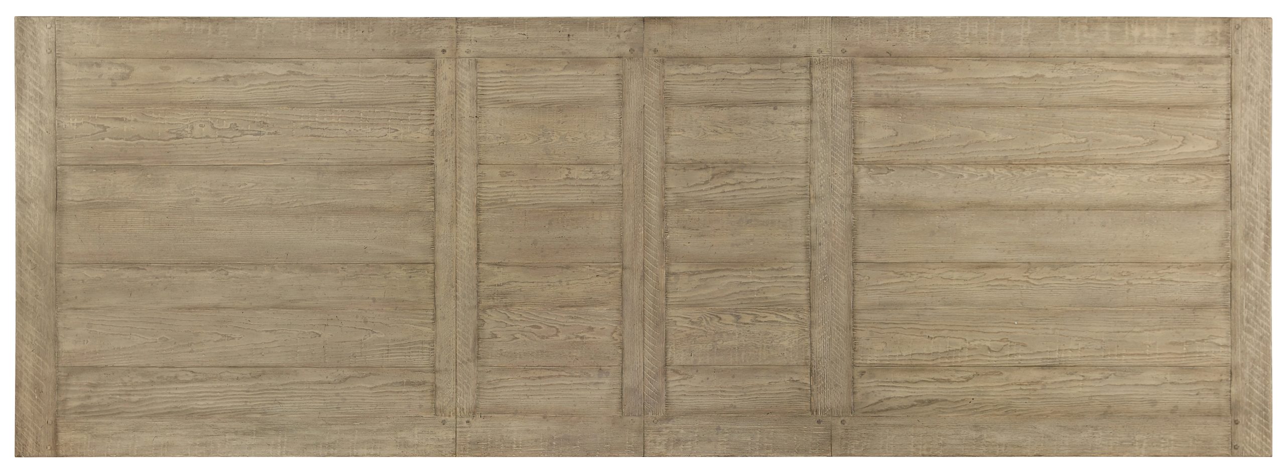 | Two 18-inch leavesBoth leaves extend table to 120-inches longFinish: Time Worn gray base, Natural top.Distressed Finished: Sand blasting, saw marks, chiseling. cow-tailing, water marks | Yes |