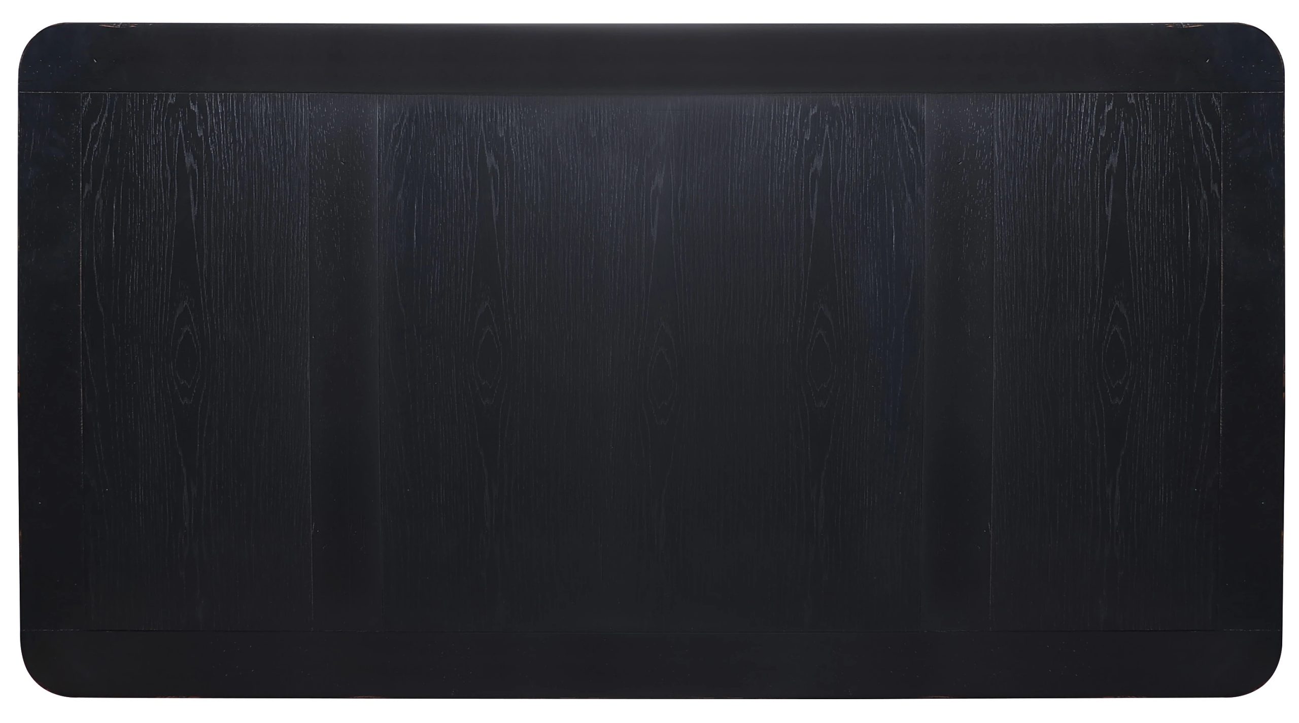 Junior executive desk with 7 drawers including locking file drawers, a drop-front keyboard drawer, and a removable writing slide. Finished on all sides in Tuxedo black with warm brown accents and oil-rubbed bronze hardware.