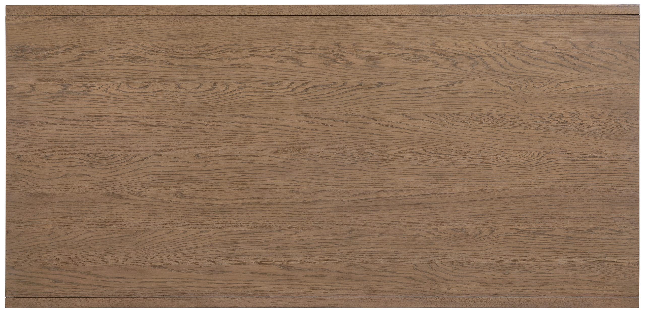 An ideal writing desk for any space – loft, bedroom, kitchen, living area – the Sonnet Writing Desk offers a stylistically versatile, functional piece blending natural textures with a refined minimalist silhouette. Crafted of Quartered and Cathedral-Cut White Oak Veneers in a light earthen finish with complementary woven cane drawer fronts and outer surface, it has a metal base, stretcher and tapered, slender legs. Featuring three drawers, it has a writing insert and pencil tray that can be used in either the left or right top drawer. Each of the top drawers has two removable partitions. The center drawer has a drop-front writing surface and wire management. Measures 58 inches wide by 28 inches deep.
