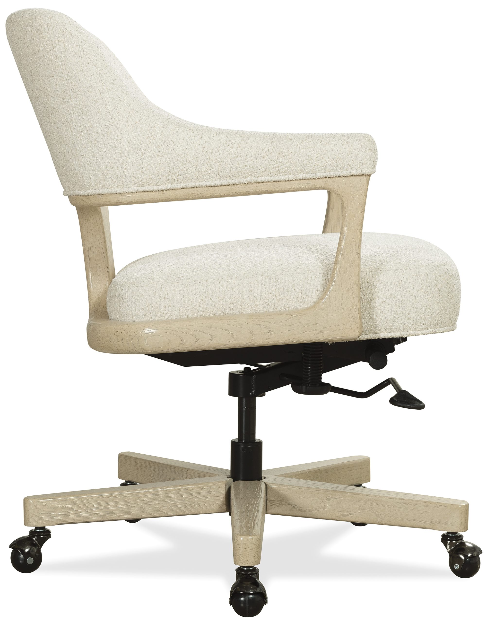 Elevate your workspace with the Briar Executive Chair in Tillson Cloud fabric. Blending transitional modern design with ergonomic function, this chair features a light wood frame, welt-trimmed edges, and a five-point caster base for smooth mobility. Adjustable arm and seat height make it a perfect fit for tailored office environments, while its clean lines and neutral palette suit both professional and home office settings.